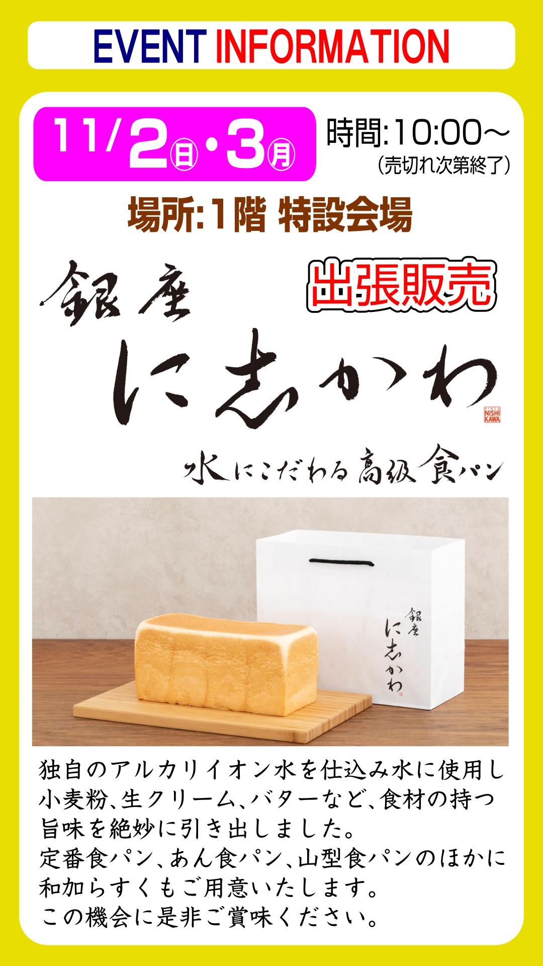 水にこだわる高級食パン 銀座に志かわの出張販売です。
