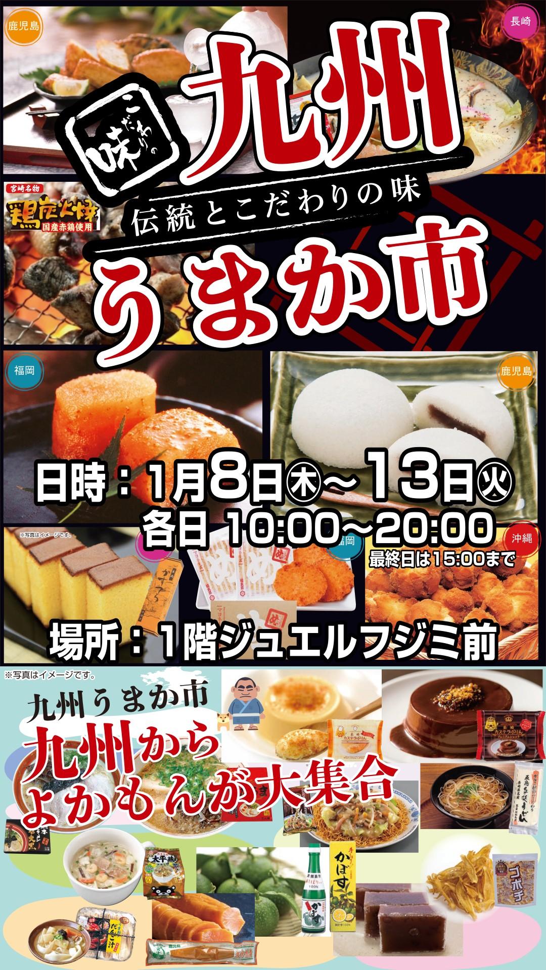 ちゃんぽん・さつま揚げ・鶏炭火焼・辛子明太子・かるかん饅頭・長崎カステラ・めんべい・サーターアンダギーなどの九州を代表するうまいもんが大集結!