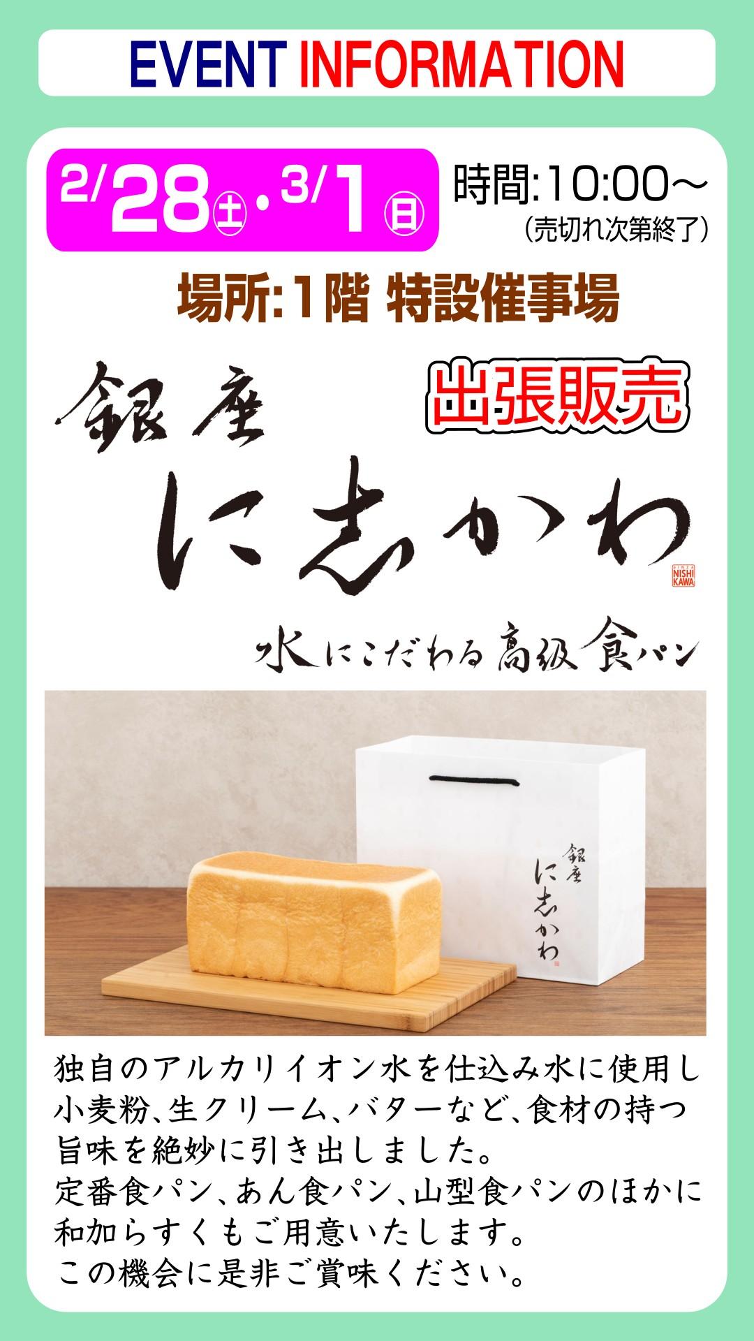 水にこだわる高級食パン 銀座に志かわの出張販売です。