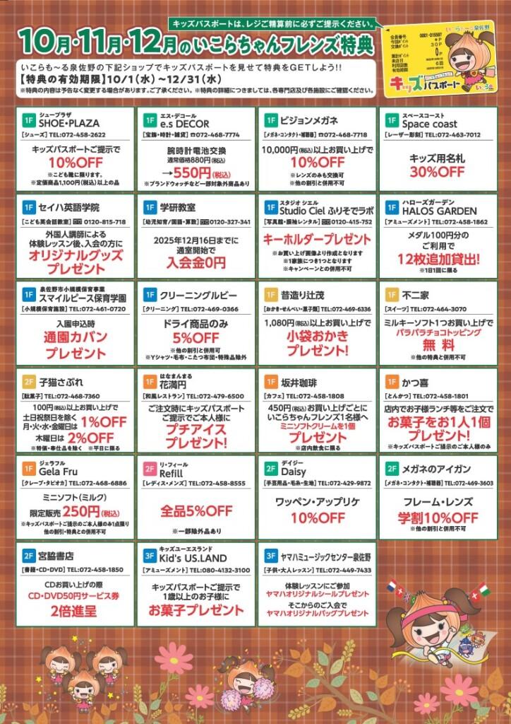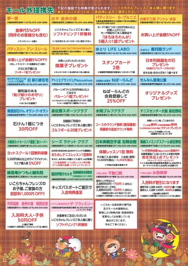 いこらも~る泉佐野の各お店やモール外提携先で「キッズパスポート」を見せて特典をGETしよう!
