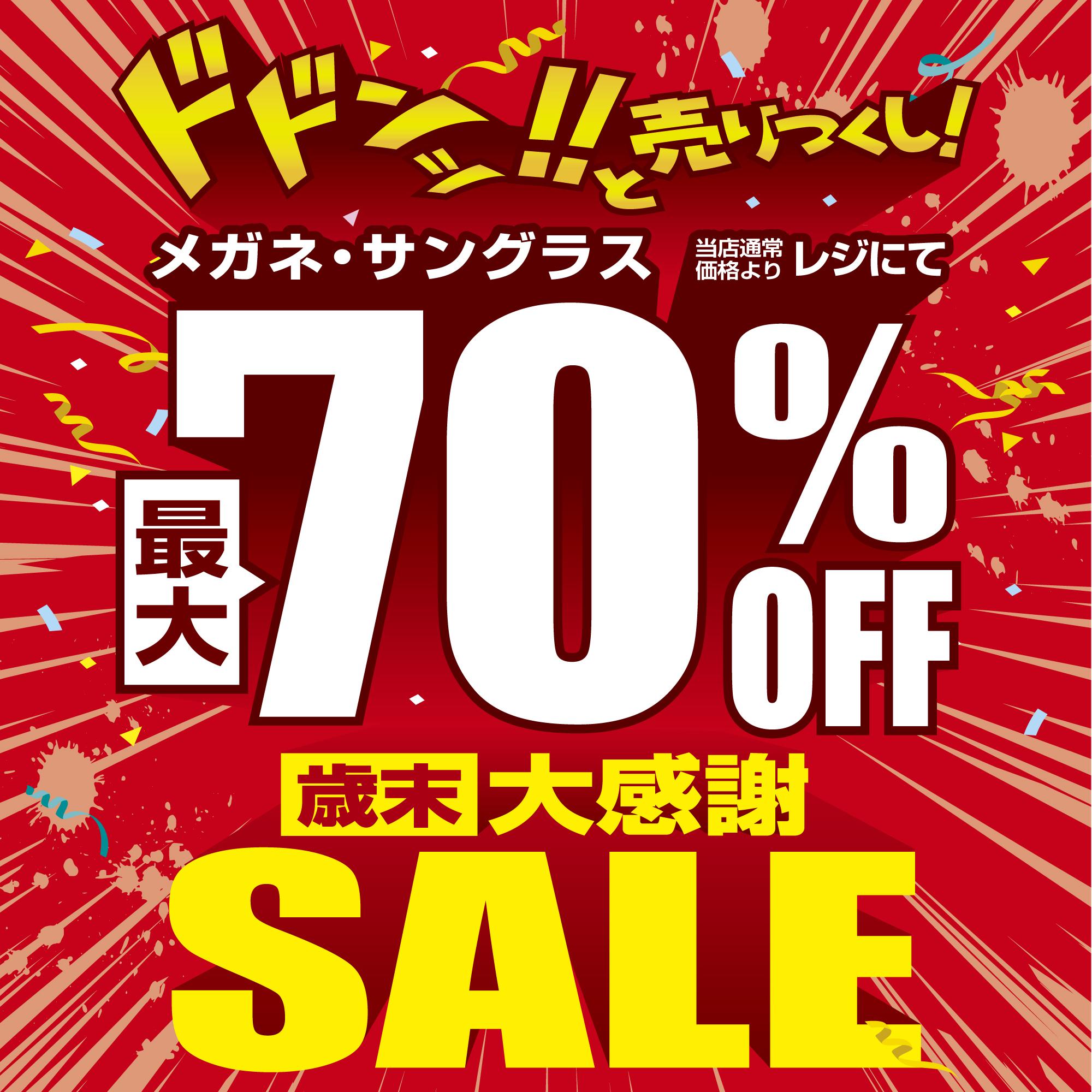 今年一年のご愛顧に感謝を込めて、メガネ・サングラスが【最大70%OFF】となる、大変お得な内容となっております。