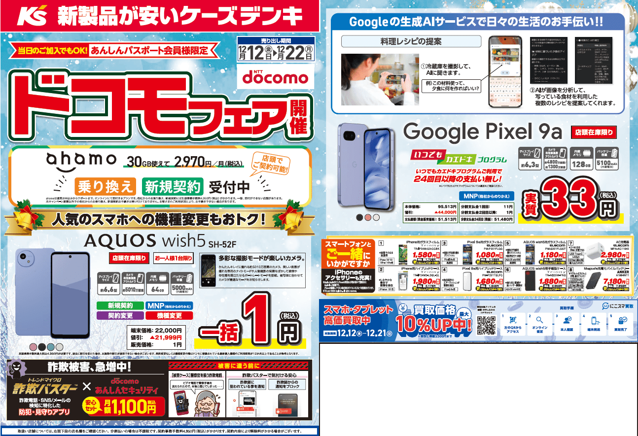 【ケーズデンキいこらも~る泉佐野店】では12月12日(金)~22日(月)までの11日間