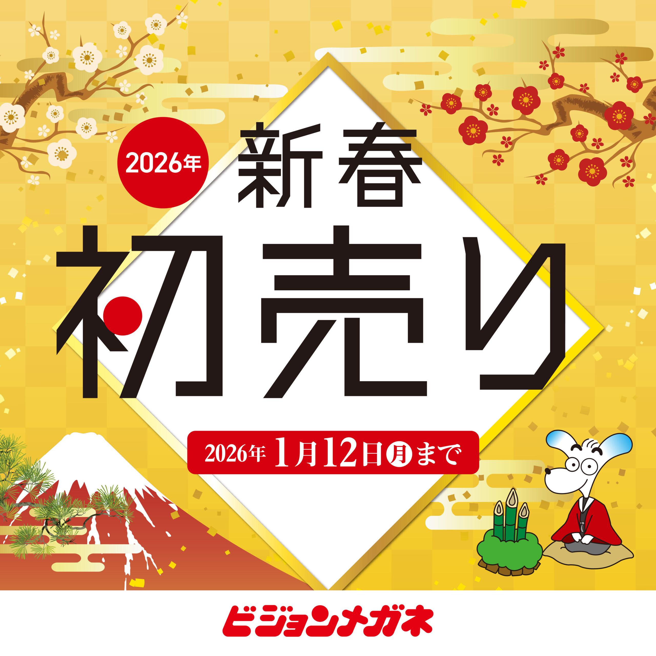ビジョンメガネ 初売りセール!! 2026.01.01 − 2026.01.12 旧年中はたくさんのご愛顧ありがとうございました。 本年もどうぞよろしくお願いいたします。 新春企画としまして2,026円メガネ、福袋セット、日本製メガネフェアなど企画盛り沢山となっております。 ご来店お待ちしております。
