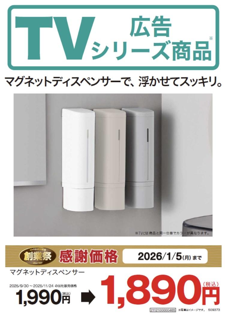 大型専門店 ライフグッズ インテリア雑貨 デコホーム 2F 203 TVCM公開中!マグネットディスペンサー 2025.12.20 − 2026.01.04 マグネットディスペンサーで、浮かせてスッキリ