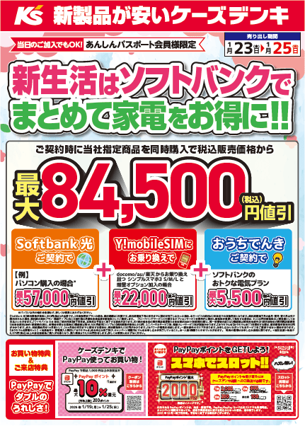 【ケーズデンキ】ソフトバンク冬の感謝セール開催‼