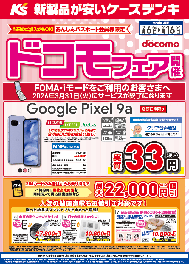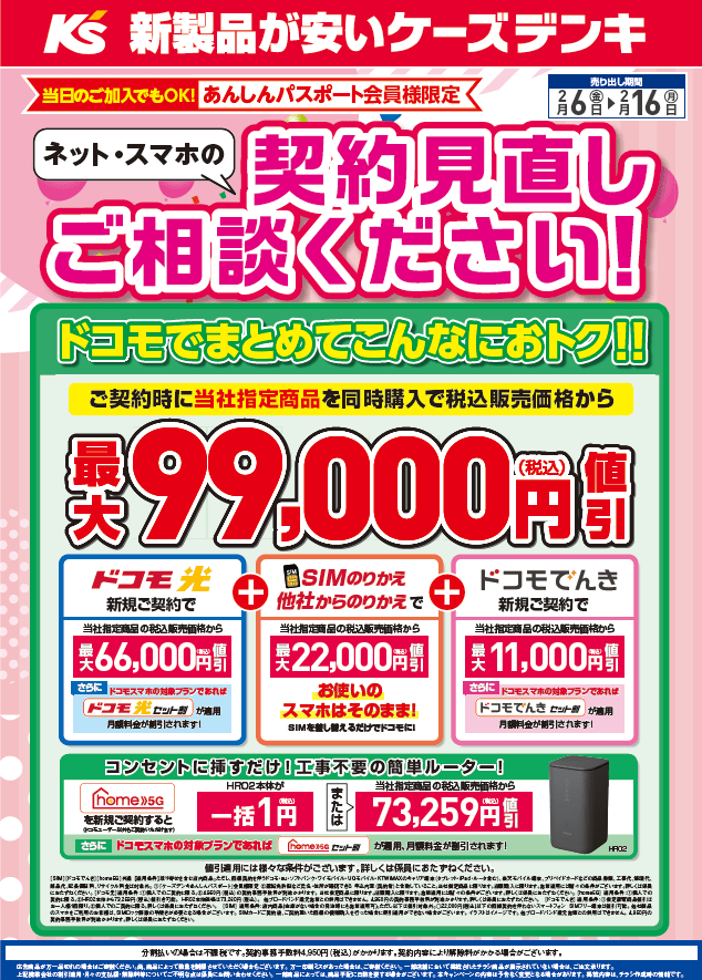 2月6日(金)~16日(月)までの11日間『ドコモフェア』を開催中です。