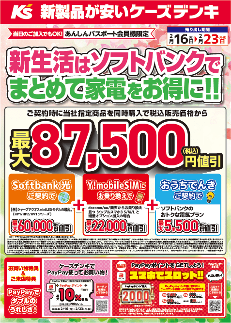 ケーズデンキ『ソフトバンクで新生活をスタート‼』
